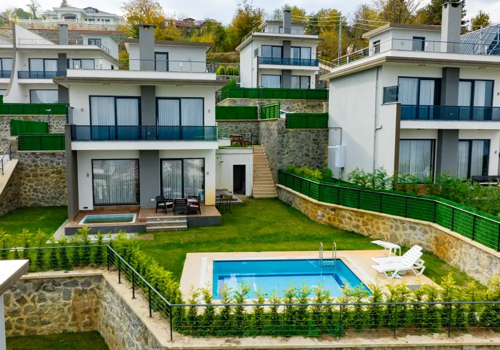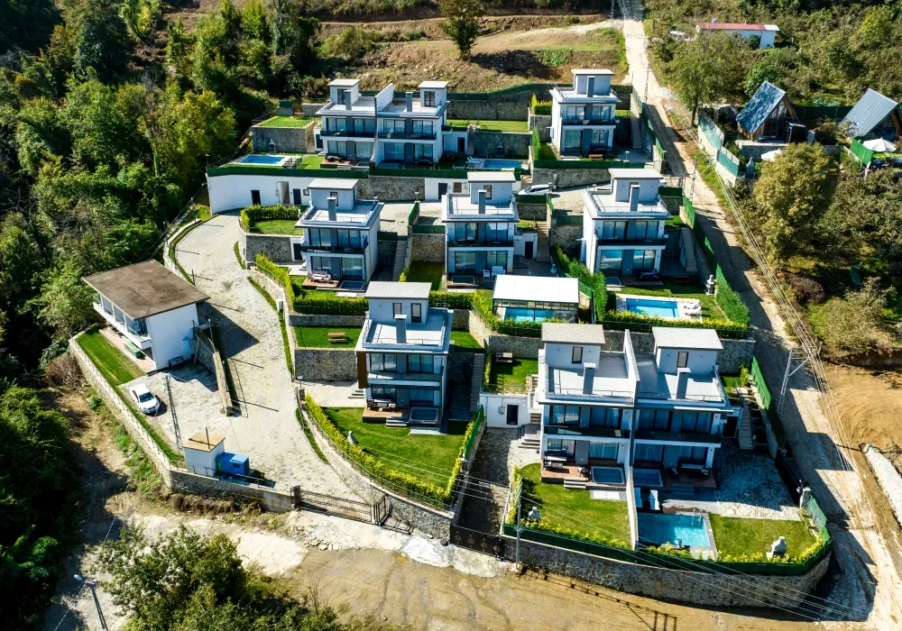 It consists of 14 independent luxury villas on a 1200 m2 land. Each villa has a 700 m2 garden, pool, parking and site security.